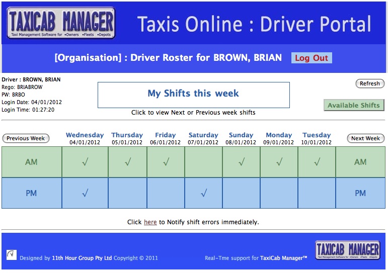 TCM Driver Rosters is available to owners of TaxiCabManager.